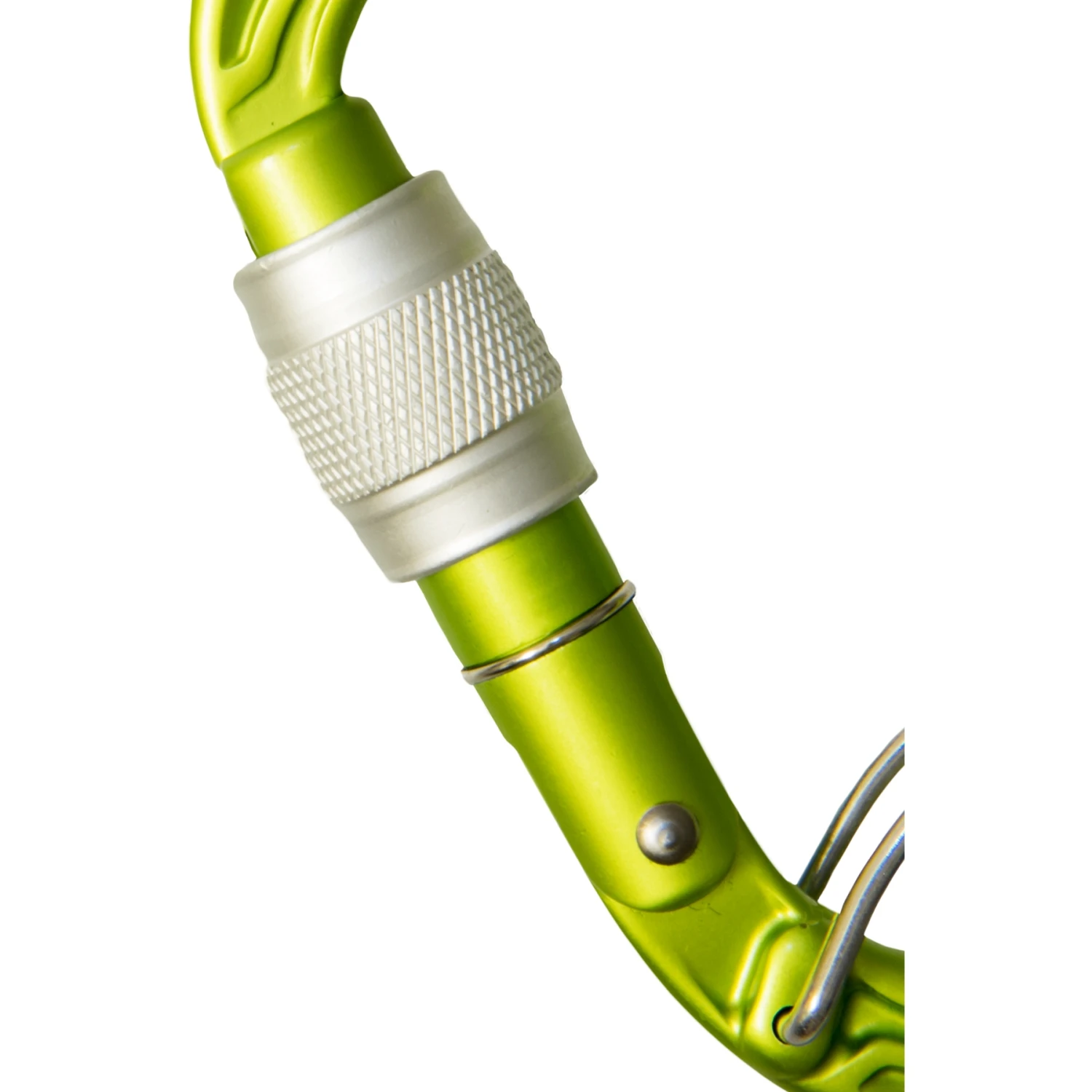 - De draadhaak houdt de karabijnhaak op zijn plaats bij het vastmaken, waardoor ongunstige dwarskrachten worden vermeden.
